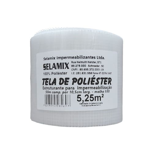 A Tela de Poliéster é uma malha de fios de poliéster utilizada para reforço em impermeabilizações moldadas no local, aumentando a resistência do conjunto, dissipando o ponto de ruptura sobre trincas e cantos de parede com piso, evitando a fissuração do impermeabilizante.