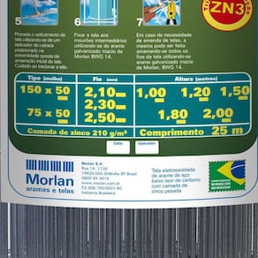 Características Gerais Descrição do Produto Tela Segurança Soldada Morlan 150X50Mm Fio 2,50Mm 1,50X25 Metros Ideal para Cercar áreas industriais, comerciais e residenciais Malha 150 x 50 Mm Fio 2,50 mm Metragem 1,50 X 25 M Rolo 25 M SAC - Fornecedor Fornecedor Morlan Telefone (11) 3897-1882