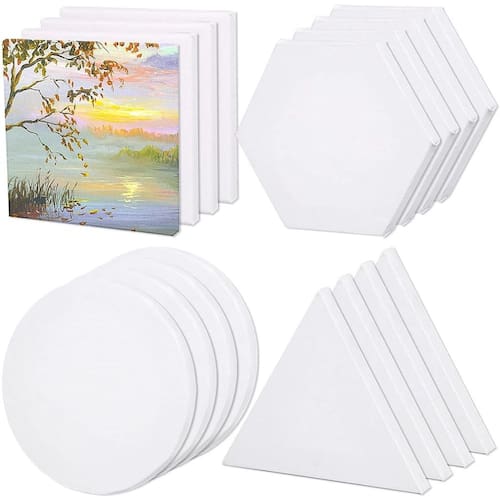 Tela esticada em branco: você receberá 16 peças de tela esticada em diferentes formatos, incluindo triângulos, quadrados, hexágonos e círculos, o tamanho é de cerca de 15 cm; cada forma tem 4 peças, a quantidade é suficiente, o estilo é suficiente e pode facilmente atender às suas necessidades de pintura. Encadernação de segurança para trás: cada tela em branco aberta é firmemente fixada na moldura de madeira com grampos, a tela é esticada e lisa, você pode pintar como quiser sem se preocupar que a tela caia. Materiais de alta qualidade: A estrutura da tela é feita de m d f e a tela esticada é feita de tecido de algodão branco. É de alta qualidade e durável, não é fácil de quebrar ou deformar. Você pode usar lápis ou tinta a óleo para pintar. Amplamente utilizado: Você pode colocar painéis de tela em salas de aula ou estúdios para fornecer serviços para estudantes, artistas ou pintores de hobby. Eles são adequados para criação individual e trabalho coletivo. Você pode pendurá-los na parede para decorar sua casa e usá-los como quiser. 100% Garantia de Satisfação: Se você tiver alguma dúvida ou insatisfação com o produto, sinta-se à vontade para entrar em contato conosco, forneceremos a melhor solução. A sua satisfação é a nossa principal preocupação.