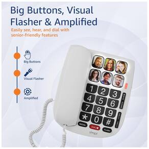 6 teclas de memória de foto de um toque, teclado de botão grande, botões de rediscagem e flash, plástico ABS de última geração e construção de botão Volume alto da campainha e pisca pisca visual, compatível com aparelho auditivo O cabo conector de linha removível para montagem em mesa ou parede funciona mesmo quando há falta de energia. 4 níveis de volume do fone de ouvido amplifica o som de entrada em até 85 decibéis, 3 configurações de volume da campainha campainha alta 75 dB Memória fotográfica mantida mesmo quando o telefone é desconectado. Programe em casa e traga para o seu ente querido sem preocupações telefone analógico, não comparável aos sistemas VoIP Voice over Internet Protocols Marca: Não Informado
