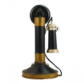 Enfeite decorativo em forma de um telefone de disco com 26 x 13 x 13 cm de dimensão, detalhes e cores muito realista. Material: metal; Atenção: este produto tem apenas função decorativa, não é um brinquedo e nem um telefone de verdade!