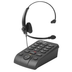 Controle digital do volume de recepção | Teclado emborrachado de alta durabilidade | 2 níveis de campainha e modo de atendimento automático | Teclas Flash, Mute, Redial e ON/OFF e LEDs indicativos de status de chamada e mudo | Chaves para ajuste de campainha, mode (Tom e Pulso) e flash (100, 300 e 600 ms) | Headset com conector do tipo RJ9 | Tiara de aço com revestimento PVC e apoio de cabeça confortável e resistente | Headset monoauricular ajustável com protetor removível em espuma | Microfone com cancelador de ruído ambiente, haste flexível (semirrígida) e conversível (300°)Identificador de chamadas