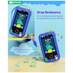 Brinquedo telefone infantil KOKODI com várias funções para crianças pequenas, incluindo fotos e vídeos com 12MP e vídeo HD 1080p. Tela sensível ao toque de 2,8 polegadas (7,1 cm), trava automática em pessoas, animais e pássaros, e 23 adesivos divertidos para fotos. Vem com 13 jogos educativos pré-instalados em três níveis de dificuldade, além de milhares de músicas e centenas de histórias armazenadas em memória ampla. Capa de silicone protege contra quedas e facilita o manuseio. Ideal para crianças de 3 a 9 anos, perfeito para presentes de aniversário, Natal e outras ocasiões, promovendo diversão segura sem exposição a riscos digitais.