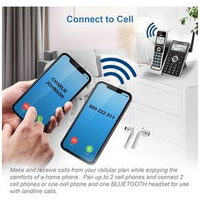 Smart Call Blocker Diga adeus às chamadas indesejadas. As chamadas robóticas em seu telefone fixo são automaticamente bloqueadas para não tocar, mesmo na primeira vez. Você também pode colocar permanentemente na lista negra qualquer número que desejar com um toque. Até 1.000 entradas de nome e número podem ser adicionadas ao bloqueador de chamadas inteligente. Bluetooth Connect to Cell Faça e receba chamadas do seu plano de celular enquanto desfruta do conforto de um telefone residencial. Emparelhe até 2 telefones celulares e conecte 2 telefones celulares ou um telefone celular e um fone de ouvido Bluetooth para uso com chamadas de telefones fixos. Com o toque de um botão, aproveite os benefícios de alta tecnologia que seu smartphone oferece. Mesmo se o seu smartphone estiver em uma sala diferente, você ainda pode acessar SIRI, S VOICE ou GOOGLE NOW a partir dos monofones sem fio. Faça uma chamada, ouça uma mensagem de texto, responda a uma mensagem de texto com resposta de voz e execute todas as outras ações que esses serviços oferecem. Sistema de atendimento digital com guia de voz Este sistema sem fio inclui um atendedor de chamadas digital com capacidade de gravação de até 22 minutos para mensagens recebidas, anúncios enviados e memorandos. Um guia de voz integrado pode ajudá lo a configurar o sistema facilmente. Alcance estendido Experimente o melhor em cobertura e clareza de longo alcance, fornecido por um design de antena exclusivo e avanços na tecnologia de filtragem de ruído. Tela retroiluminada grande e teclado iluminado com botões grandes O texto de alto contraste na tela retroiluminada branca extragrande de 2 polegadas facilita a leitura do identificador de chamadas recebidas ou dos registros do histórico de chamadas. Além disso, o teclado do monofone com luz de fundo azul permite discagem fácil em condições de pouca luz. Esse recurso é especialmente útil para pessoas com deficiência visual. Push to Talk, Intercom Conference Os botões Push to Talk nos monofones e na base permitem que este sistema funcione como um walkie talkie para se comunicar instantaneamente com até quatro unidades ao mesmo tempo. Com o recurso de intercomunicação, você pode ligar para qualquer outro aparelho dentro de casa. Fazendo a ponte do intercomunicador com uma linha externa, você pode colocar em conferência até 4 monofones simultaneamente em uma chamada. Viva voz Full Duplex com Anúncio de Identificação de Chamada O monofone e a base anunciam o nome de quem está ligando, para que você não precise procurar o monofone para ver quem está ligando. Desfrute de um viva voz que pode acompanhar suas chamadas Marca: Não Informado