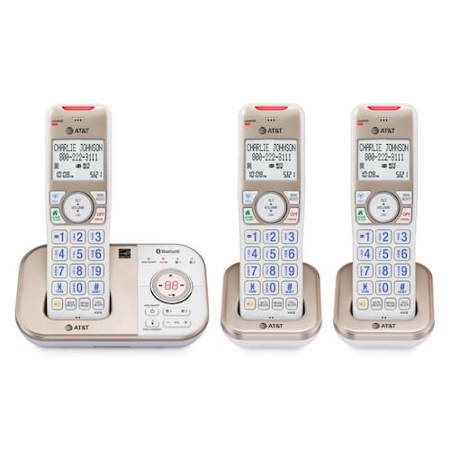 SimAT&T Telefones fixos para casa com secretária eletrônica, DECT 6.0 3 aparelhos Bluetooth expansível, bloqueio inteligente de chamadas, identificador de chamadas, interfone e conexão Bluetooth à - [Bloqueador inteligente de chamadas] – Diga adeus a chamadas indesejadas. Rastreie e bloqueie chamadas e ligações automáticas desconhecidas no seu telefone fixo. Armazene até 1.000 nomes e números em sua lista de bloqueio. Você também pode colocar qualquer pessoa na lista negra com a chave dedicada no aparelho. - [Conexão Bluetooth à célula] – Emparelhe e conecte até 2 celulares, ou 1 celular e 1 fone de ouvido com Bluetooth, e faça e receba chamadas fixas, bem como chamadas de celular com seu telefone BL3112-3. Mesmo se o seu celular estiver em outra sala, você ainda pode acessar Siri, S Voice ou Google Now a partir de seus aparelhos sem fio. - [Sistema de atendimento digital com guia de voz] – com até 22 minutos de tempo de gravação para mensagens recebidas e memorandos, o sistema de atendimento digital atende chamadas quando você não pode. O recurso de configuração guiada por voz ajuda você a navegar facilmente pelas opções de configuração do sistema de atendimento digital e permite que você recupere e ouça mensagens com facilidade. - [Baixe contatos da agenda telefônica] - Baixe seus contatos de celular para o seu telefone BL3112-3 via Bluetooth; aproveite a conveniência de ter todos os seus contatos em apenas um BL3112-3. - [Tela retroiluminada grande, texto grande, teclado iluminado] – Tela retroiluminada grande de 5 cm nos aparelhos sem fio com texto de alto contraste para leitura excepcional da tela; o teclado iluminado permite discagem fácil em condições de pouca luz. - [Intercomunicação e conferência] - Faça chamadas internas para os outros aparelhos com o recurso de intercomunicação. Transfira chamadas externas via interfone ou conferência de 3 vias com chamadas externas e 2 aparelhos. - [Viva-voz full duplex simulado e toque visual] – os alto-falantes full-duplex integrados no aparelho permitem que ambas as extremidades falem e sejam ouvidas ao mesmo tempo. Projetado com uma campainha visual para sinalizar chamadas recebidas, perfeito para pessoas com deficiência auditiva ou que preferem um toque silencioso. - [Acesse contatos e registros para chamadas rápidas] - salve até 1.000 nomes e números no diretório; economize até 50 números de chamadas recebidas; o identificador de chamadas compartilha automaticamente contatos entre aparelhos; armazene os últimos 10 números chamados. - Expansível para 5 aparelhos: adicione facilmente aparelhos acessórios (BL3112-0) até 5 no total, com apenas uma tomada de telefone.