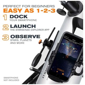 LIBERE O PODER DO SEU SMARTPHONE Deixe seu iPhone ou telefone Android levá lo em um passeio guiado pelo céu noturno não é necessária experiência em telescópio. Basta seguir as setas para localizar estrelas, planetas e muito mais TECNOLOGIA DE RECONHECIMENTO DO CÉU STARSENSE PATENTEADA Este telescópio exclusivo usa a tecnologia patenteada e premiada de reconhecimento do céu StarSense e seu smartphone para analisar os padrões das estrelas e calcular sua posição em tempo real. APLICATIVO STARSENSE EXPLORER O aplicativo gera uma lista dos melhores objetos para visualizar com base na sua hora e localização exatas. Veja planetas, nebulosas mais brilhantes, galáxias e aglomerados de estrelas da cidade MAIS objetos mais fracos e profundos do céu de locais mais escuros. FÁCIL DE CONFIGURAR E USAR A montagem manual de altazimute com haste de câmera lenta facilita seguir as setas na tela até o alvo desejado. Quando o alvo fica verde, está pronto para ser visto na ocular do telescópio. REFLETOR NEWTONIANO DE DE ALTA QUALIDADE O espelho primário de 4,5 apresenta revestimentos altamente reflexivos e capacidade de coleta de luz suficiente para visualizar crateras na Lua, Júpiter, Saturno, Marte e objetos do céu profundo como a Nebulosa de Orion Marca: Não Informado