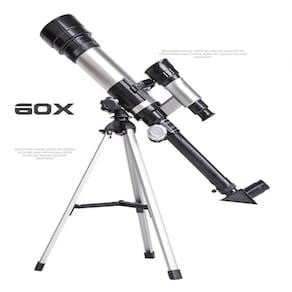 Telescópio Astronômico para Jovens ExploradoresPresenteie os jovens curiosos com a oportunidade de desbravar os mistérios do universo!Ideal para pequenos cientistas, este telescópio estimula o aprendizado e o desenvolvimento cognitivoenquanto revela as maravilhas do céu estrelado.Características principais:Ampliação poderosa: alcance de 18x a 60x para observar os detalhes do espaço.Sistema óptico de refração: imagens claras e detalhadas para uma experiência impressionante.Diâmetro da objetiva: 50 mm.Distância focal: 360 mm (extensível até 180 mm).Lentes incluídas: H29 mm e H6 mm para ajustes de ampliação.Design prático e durável:Estrutura leve e resistente em plástico de alta qualidade.Tripé de alumínio dobrável com 36 cm de altura, garantindo estabilidade ideal para jovens usuários.Dimensões e especificações:Tamanho total telescópio+TRIPÉ: 51 cm.Tamanho do telescópio: 40 cm.Peso: aproximadamente 850 gramas.Recomendado para crianças a partir de 8 anos.Este telescópio é mais do que um brinquedo: é uma janela para o universo!Desperte a curiosidade e o amor pela ciência de maneira divertida e educativa.