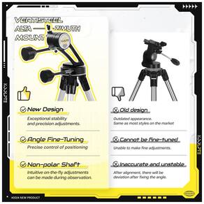 Ajuste Preciso: Equipado com uma montagem Vertisteel AZ, permite posicionamento preciso e parada livre em eixos não polares. O design de parada permite que a lente se mova suavemente com alta precisão, alcançando resultados ótimos de observação através de ajustes de alta precisão.
