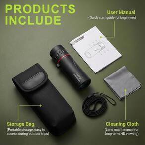 Material: plástico e vidro óptico Cor: preto e prata Tamanho da embalagem: 15 cm x 10 cm x 6 cm Peso da embalagem: 0,3 kg Lista de embalagem: 1 x telescópio monocular com adaptador de telefone Este telescópio monocular de alta definição oferece ampliação de 10x com uma lente objetiva de 25 mm, proporcionando vistas nítidas e claras para atividades ao ar livre, como caminhadas, camping e observação de pássaros. Equipado com um adaptador de telefone, este monocular permite que você conecte facilmente seu smartphone, permitindo capturar e compartilhar fotos e vídeos impressionantes de suas aventuras ao ar livre. Compacto e leve, este monocular foi projetado para ser portável, facilitando o transporte no bolso ou na mochila, para que você possa levá-lo aonde quer que vá. O monocular possui revestimentos avançados para melhor transmissão de luz, fornecendo imagens brilhantes e de alto contraste, mesmo em condições de pouca luz, perfeitas para visualização diurna e noturna. Durável e resistente às intempéries, este monocular foi construído para suportar condições externas, garantindo desempenho e confiabilidade duradouros durante todas as suas excursões ao ar livre.