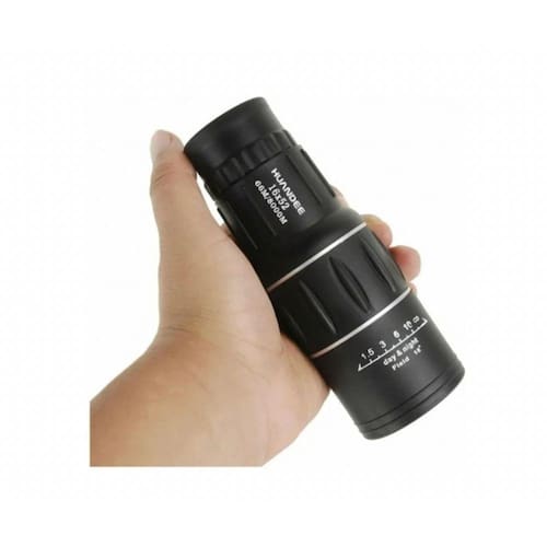 Equo com uma lente grande de 16x52 mm, o monocular com óptica multicamada fornece transmissão de luz rápida e incrível nitidez de imagem, à prova d'água e resistente à neblina, excelente desempenho e durabilidade na maioria dos climas e ambientes, e sua capa robusta oferece uma aderência confortável, compacta e portátil, ótima para desfrutar de paisagens, eventos esportivos, acampar, observar pássaros e muitas outras atividades ao ar livre. MONOCULAR 16X52 DE ALCANCE MUITO LONGO, IDEAL PARA EXTERIORES AO AR LIVRE. PESO 220 G16 x 52 mm de diâmetro da lente. Campo de visão: 66m/8000m. Todas as lentes de vidro óptico oferecem uma qualidade de imagem alta e nítida. A roda ajustável antiderrapante gira a lente precisa e apropriada. A óptica multicamada com prisma de teto BAK4 garante transmissão de luz e brilho superiores sem diferença de cor. Capacidade de foco duplo (zoom ajustável frontal e traseiro). Capa antiderrapante Para uma pegada firme e confortável com uma mão em condições difíceis. A construção diária à prova d'água e resistente ao nevoeiro é excelente e durável na maioria dos climas e ambientes. Ótimo para atividades esportivas ao ar livre, observação de pássaros, escalada, caça, arco e flecha, caminhadas, acampamentos, viagens, passeios de barco e mochilão.\ n\ nNota: não é uma noite com infravermelho, ela só permite que você observe o que seus olhos normalmente veem à noite.\ n\ nEspecificação do produto\ n\ nAmpliações: 16x Lente objetiva: 52 mmprisma: Bak4roof\ n\ nCampo de visão: 66 m/800 m Foco próximo: 1,5 m/4,9 pés\ NPeso: 234g/8,3 oz\ nTamanho do pacote: 17* 6,5* 6,5 cm/6,7* 2,6* 2,6* 2,6\ NPeso da embalagem: 284g/10 oz\ nDimensão do produto: 58 mm de largura x 155 mm de comprimento\ nCompre conteúdo: 1 * monocoular1 * corre1 * saco de armazenamento