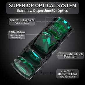 - ÓPTICA PREMIUM: monocular de ampliação de 10x25 com vidro ED, prisma BAK-4, lentes totalmente multirrevestidas para clareza e brilho excepcionais