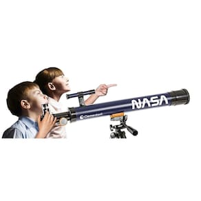Contém: 1 autêntico telescópio da NASA com lente objetiva de 50 mm e oculares intercambiáveis para diversos efeitos de ampliação até 300x. Com tripé extensível até aos 130 cm.