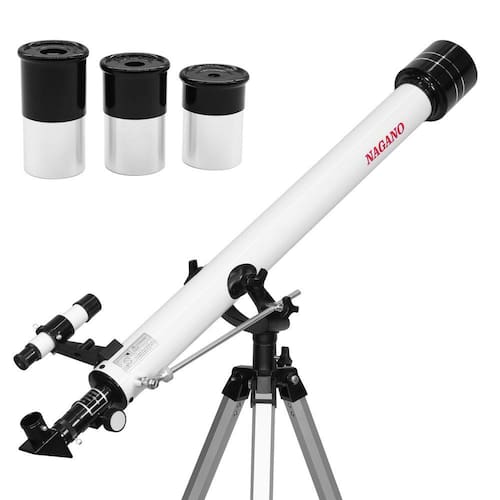 O Telescópio Refrator NAGANO é indicado principalmente para iniciantes no mundo da astronomia. Esse equipamento permite com que o usuário observe inúmeros cenários. O telescópio 60X900 aumenta em até 675X e acompanha vários tipos de lentes para a exploração de diferentes objetos. AUMENTO DAS LENTES H20mm = 45X / H12 5 mm = 72X / SR4 mm = 225XMIRA BUSCADORA 5 X 24ABERTURA 60 mmDISTÂNCIA FOCAL 900 mm