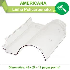 Modelo: Telha Americana Espessura: 2,5 mm Transmissão de luz: até 85% Altura: 5,5 cm Largura: 26 cm Comprimento: 43 cm Cobertura: 12 telhas/m2Si Peso: 380 gramas
