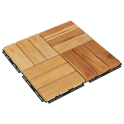 - Material do ladrilho: madeira maciça de teca com acabamento a óleo