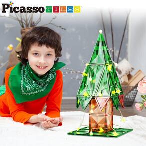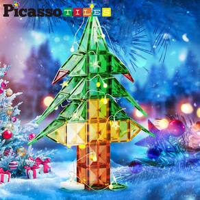 Telhas magnéticas PicassoTiles, 106 peças, iluminam LED, árvore de Natal, tema natalino, ímã de construção, conjunto de blocos de construção, presentes de aprendizagem STEM, brinquedos para crianças, meninos, meninas, crianças, brinquedos, jogos educativos