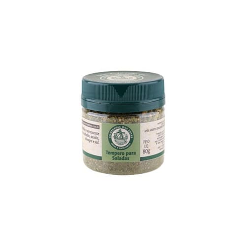O tempero para saladas companhia das ervas é uma mistura a base de alho, cebola, salsa, manjericão, menta, mostarda e tomilho desidratados, sem adição de sal.