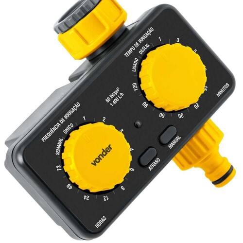 Transforme a maneira como você cuida do seu jardim com o Temporizador Eletrônico para Irrigação Vonder. Este dispositivo prático e eficiente permite que você programe o tempo e a frequência de irrigação, garantindo que suas plantas recebam a quantidade certa de Água, economizando tempo e recursos. Com um design robusto em plástico resistente, ele é ideal para quem busca automatizar a irrigação de jardins, hortas e gramados, proporcionando mais saúde e vitalidade às suas plantas. A Vonder é uma marca reconhecida pela qualidade e durabilidade de seus produtos, e este temporizador não é exceção. Ele é alimentado por duas pilhas AA (não inclusas) e possui um tempo máximo de operação de 120 minutos, com pressão máxima de 60 lbf/pol. A instalação é simples, com conexão de entrada por rosca de 1 e bucha de redução de 3/4, e saída de engate rápido de 1/2. Além disso, o temporizador é compatível com diversos sistemas de irrigação, tornando-se uma solução versátil para diferentes necessidades.