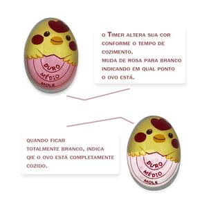 Modo de uso: Coloque o timer junto dos ovos dentro da panela com água, acenda o fogo e observa a mudança de cor. A cor vai mudando das bordas para dentro, Indicando o ponto de cozimento desejado mole, médio e duro. Atingindo o ponto, retire os ovos da panela.