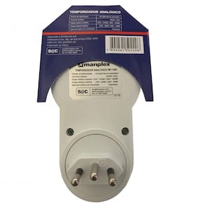 - Botão Liga/Desliga - Tomadas conforme novo Padrão Brasileiro; - Capacidade de corrente: 10A resistivo - Potência Máxima: 1.270W 127 V - 2.200W 220 V - Alimentação em 127v ou 220v bivolt , com seleção automática de voltagem - 96 programações diárias, com intervalo mínimo de 15 minutos entre ajustes - Chave manual/automática, que permite desativar temporariamente as programações executadas Marca: Não Informado Ean: 7899491502208