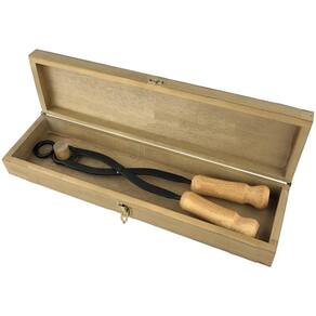 a tenaz do porto é um instrumento que permite o corte do gargalo da garrafa de vinho através do fogo e choque térmico. Possui dois diâmetros de corte para abranger o máximo de gargalos de garrafas de vinho. O processo do ritual do corte do gargalo desenvolve-se da seguinte forma: - em primeiro, deve se aquecer a ponta da tenaz em fogo, até que o metal fique bem quente. Não é necessário que fique incandescente. - aquecida a tenaz devera abraçar o gargalo da garrafa, logo abaixo da rolha. Mantenha a tenaz por alguns segundos abraçando o gargalo. - remova a tenaz e molhe a partir aquecida com água fria para que aconteça um choque térmico. Poderá ocorrer pequeno estalar de ruído, indicando a quebra do vidro. - puxe o gargalo e este sairá perfeitamente, com uma precisão excelente, sem resíduos de vidro, uma vez que é um corte limpo. Conveniente para abrir garrafas de vinho muito velhas ou de garrafs cuja rolha não se encontra em condições de ser retirada com um saca-rolhas. A extremidade inferior da tenaz, depois de fortemente aquecida, abraça o pescoço da garrafa logo abaixo da rolha, por alguns momentos. De seguida, retira-se a tenaz e deita-se água fria sobre a área aquecida, que acabará por partir. Retira-se com cuidado a parte do pescoço com a rolha e o vinho está pronto a servir. Tamanho da tenaz: 39,5 cm