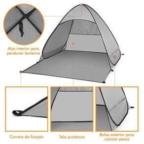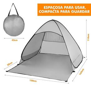Tenda Barraca De Praia Proteção Sol Portátil Adulto Cinza A Barraca de Praia para Proteção da Magma Br tem capacidade para até 2 adultos deitados. Como ela você terá praticidade para montar uma tenda de descanso ou proteção. Compacto e seguro - fácil de montar e desmontar A montagem é instantânea e fornece um abrigo rápido para 1 ou 2 adultos. Possui uma janela de ventilação, e um revestimento especial para proteção UV além de ser resistente à água. Muito fácil de dobrar, leve e compacta, para ser levada onde desejar: parque, praia ou mesmo no quintal de casa. 2 bolsos laterais para adicionar peso/areia e pinos de aço para manter a barraca estável em dias com muito vento. Destaques: Costura de alta qualidade Proteção contra raios UV e resistente a água Leve e compacto - Fácil de guardar e transportar Montagem Instantânea pop-up Prático - Fácil de montar e desmontar Proporciona a sensação de privacidade Pode ser em ambientes internos e externos Janela de Ventilação Capacidade para até 2 Adultos Bolsos laterais para colocar peso/areia Especificações Técnicas: Cor principal: Cinza Material: Poliéster Tamanho desmontado: 45cm x 45cm x 5cm AxCxP Tamanho montado: 165cm x 150cm x 110cm AxCxP Peso: 950g Bolsa para transporte: Sim Itens Inclusos: 1 Tenda de poliéster de Praia Adulto Cinza 1 Bolsa para guardar e transportar Pinos para sustentação Notas: 1. Devido ao monitor diferente e efeito de luz, a cor real do item pode ser ligeiramente diferente da cor mostrada nas imagens. 2. O tamanho do Produto pode variar de 1-5mm devido a medição manual. Marca: Não Informado Ean: 7898629853502
