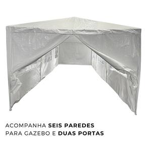 A Tenda Gazebo Importway é ideal para você aproveitar um dia de sol na piscina, praia, fazer eventos ao ar livre, chácaras ou quando for acampar. Além de proteger você e sua família do sol quente, também auxilia na prevenção de doenças de pele. Se adapta á sua necessidade, com cobertura de 3x9 metros em poliester lavável com base de 3x9 metros. A Tenda é simples e prática de usar em qualquer ocasião, com estrutura em tubos de aço carbono com revestimento em epóxi super resistente e seguro. Ainda inclui espetos metálicos para fixação em solo firme e tirantes para amarração.