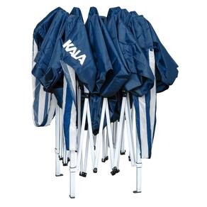Especificações Dimensões: 300cm x 300cm x 250cm Peso: 14kg Pés: Alumínio Estrutura: Aço carbono com pintura Epóxi Material: 100% Poliéster Oxford Itens Inclusos Tenda Gazebo Dobrável 3x3m Azul Aço Kala Sacola para transporte Ganchos e discos para ancoragem Tirantes para armação Perguntas Frequentes (FAQ) Pergunta: A tenda é resistente à chuva?