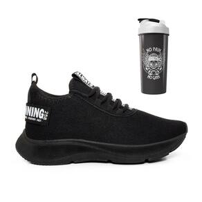 Tênis Academia Masculino Esportivo Caminhada Bf Shoes + Coqueteleira Exclusiva - 38 - Preto