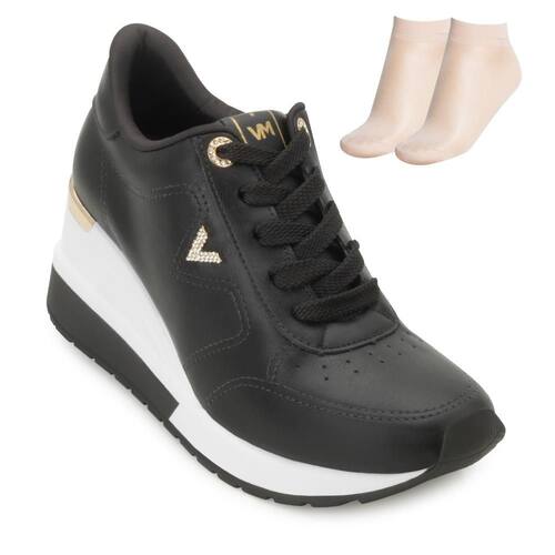 O Tênis Anabela Via Marte é a combinação perfeita de estilo e conforto. Com um design moderno e sofisticado, ele se destaca pelo forro têxtil acolchoado e pela palmilha anatômica macia, garantindo bem-estar a cada passo. O ajuste em cadarço proporciona segurança e estabilidade, enquanto os detalhes em strass e o toque metalizado no calcanhar adicionam charme e elegância ao modelo. O solado anabela de 6,5 cm eleva a silhueta sem comprometer o conforto, tornando-o ideal para diversas ocasiões. Para completar a experiência, acompanha um par de meias, oferecendo ainda mais comodidade no seu dia a dia
