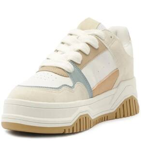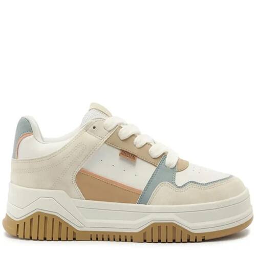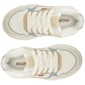 Um convite para explorar cada caminho que o verão pode te levar.. Das ruas ensolaradas aos destinos improváveis, a coleção celebra a liberdade de seguir o seu ritmo, com leveza, cor e conforto.. Verão?26 é sobre estar pronta para viver agora, do seu jeito.. Tênis Sofi, com detalhe em recortes, em branco e azul. O modelo apresenta nova construção no solado - mais alto e estruturado, traz sola flatform emborrachada em branco com detalhe tratorado marrom.. Com um design robusto com aplicação de mix de peças em napa e camurça coloridas e recortadas por todo o cabedal.. Possui acabamentos em costura pesponto nos contornos e perfuros na lateral e na biqueira, proporcionando maior respirabilidade para o tênis.. De amarrar, com atacadores brancos. Aplicação de tag marrom lateral Anacapri..