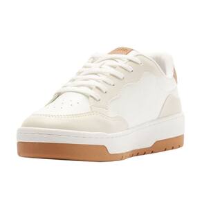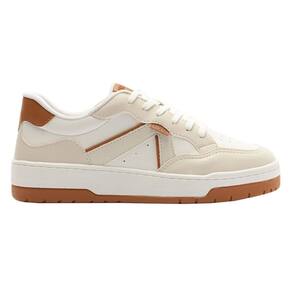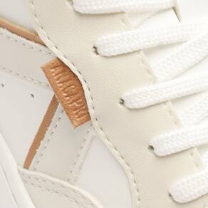Tênis Recortes Kei Branco E Marrom Canela. O modelo apresenta nova construção no solado - mais alto e estruturado, traz sola flatform emborrachada em branco com detalhe lateral e tratorado em marrom. Com um design robusto com aplicação em mix de peças recortadas em napa marrom no calcanhar, traz acabamentos em costura pontilhada nos contornos e perfuros nas laterais e biqueira, proporcionando maior respirabilidade para o tênis. De amarrar, com atacadores brancos e etiqueta emborrachada marrom Anacapri aplicada na lingueta. Aplicação de tag marrom lateral com assinatura Anacapri.
