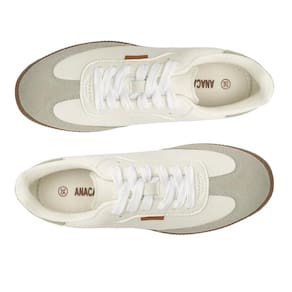 Tênis chuteira Sarah branco e verde.. De solado baixo emborrachado em goma vulcanizada, o modelo apresenta design de costura pesponto nas laterais e contornos, com recortes em peças em camurça cinza aplicado na biqueira e em napa verde na parte traseira.. De amarrar, com atacadores brancos, possui parte interna forrada. Com aplicação de tag lateral marrom Anacapri.. Porque Apostar: Tênis nos pés por onde você for: um verdadeiro clássico que jamais sai de moda! De calce easy & trendy, o tênis feminino vem para a temporada de verão Anacapri com design imponente: estilo chuteira, traz recortes no cabedal, com um shape em tons que combinam com looks despojados ou mais estruturados.. Com nova construção na sola de goma, ele é o modelinho mais cool, descomplicando a rotina com estilo.. Queridinho que chama esse ícone..
