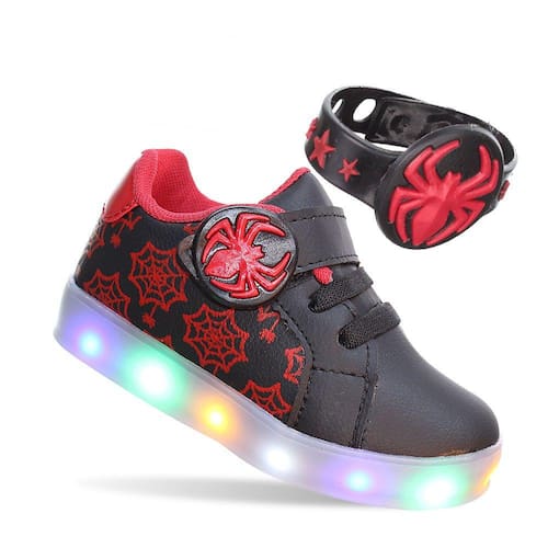 kit de Tenis com pulseira de criança com luzes de leds automáticas que se acendem por impacto, basta pisar que acende. Modelo exclusivo Pemania, fechamento por cadarços de elástico e fecho de contato, ideal para o dia a dia da criança. Cabedal que se acopla aos pés com material macio e flexível proporcionando conforto e desempenho ao andar conta com luz que são acionadas pelo impacto a cada pisada combina com tudo, luzes coloridas que vão fazer a diversão das crianças Luzes: Bateria não recarregável, duração longa, cerca de 10 mil pisadas Forma Interna: Padrão Lavagem: Somente a mão, não mergulhar o produto