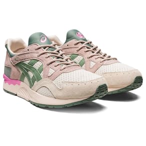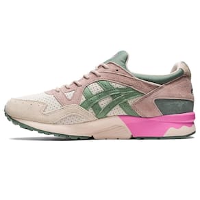 O tênis GEL-LYTE™ V da Coleção SPRING IN JAPAN™ inspira-se nas flores que florescem durante a primavera japonesa. Seu cabedal é feito em nobuck de pele de porco, enquanto a lingueta apresenta um bordado da flor Kamon. Tons neutros são contrastados com vários toques de cor que inspiram glicínias, flores de cerejeira, hortênsias, nemophilas e flores de mostarda. O modelo mantém o design ondulado de quando chegou ao mercado de corrida em 1993. Ele também conta com a tecnologia GEL™ na parte traseira do pé para conforto no dia a dia.