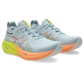 O amortecimento macio do tênis GEL-NIMBUS™ 26 PARIS proporciona a sensação de estar pousando nas nuvens. Este design foi reformulado para ajudar a criar uma experiência de corrida mais suave e suave. Sua paleta de cores é inspirada na "cidade das luzes" e seus tons energizantes.