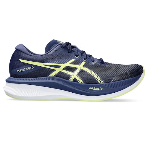 O tênis MAGIC SPEED™ 3 foi projetado para atender aos seus objetivos de corrida. Além do amortecimento mais macio, este tênis ajuda a criar maior estabilidade ao longo da sua passada. Uma placa de carbono de comprimento total é inserida na entressola para impulsionar o pé para a frente. Isso ajuda a criar uma experiência mais suave e propulsiva durante a fase de impulso da passada. Ambas as camadas da entressola são reconstruídas com amortecimento FF BLAST™ PLUS. Isso torna a passada mais firme e energética durante corridas de ritmo e corridas.