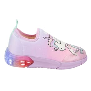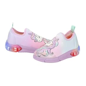 O Tênis Space é perfeito para meninas que adoram explorar com estilo e diversão. Com design moderno e luzes multicoloridas que piscam a cada passo, transforma cada caminhada em uma experiência mágica. Confeccionado em tecido respirável e maleável (elastano) com estampa de unicórnio, oferece conforto extremo graças à palmilha Fisioflex, que simula a sensação de andar descalço e estimula o desenvolvimento natural. Fácil de calçar e livre de substâncias tóxicas, é a escolha ideal para acompanhar a rotina das pequenas com segurança, praticidade e encanto.