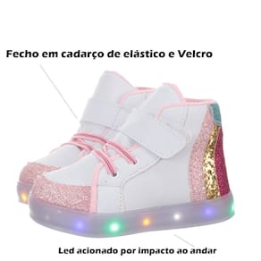 O Tênis Botinha Led Arco Iris é ideal para crianças que adoram se divertir. Ele possui um design moderno com cores vibrantes, glitter em volta e equipado com luzes de led na sola. Ainda consegue combinar toda alegria característica de uma criança com qualidade, pois é produzido com materiais que combinam resistência e leveza, garantindo conforto para as crianças e durabilidade ao produto.