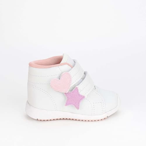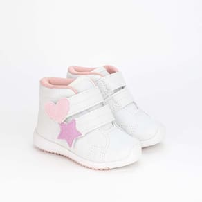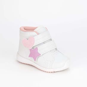 O Tênis Cano Alto invadiu os pés da criança e claro os pequeninos bebês não poderiam ficar de fora. Tênis Bebê desenvolvido com materiais de alta qualidade, macio e bem flexível para oferecer todo cuidado e conforto que as pequenas precisam. Os patches de estrela e coração em glitter trazem estilo e diversão ao modelinho que tem tudo para ser o queridinho das mamães. Tênis Botinha em cores clássicas e básicas, perfeito para compor vários looks com calça, vestido ou bermudinha. Possui sola TR antiderrapante emborrachada, garantindo segurança e estabilidade na pisada, além de maior resistência do produto.
