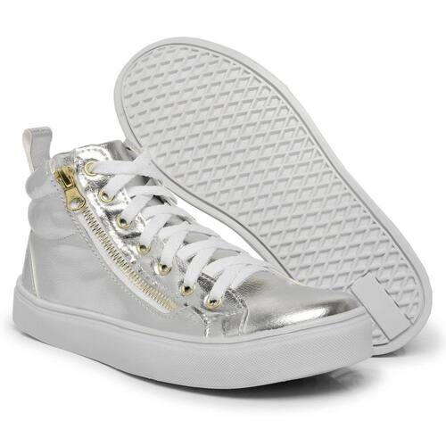 Tênis Cano Médio Metalizado Lk Store Fecho de Cadarço e Zíper - 38 - Prata
