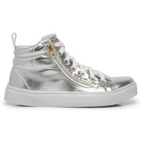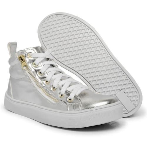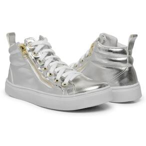 Tênis Cano Médio Metalizado Lk Store Fecho de Cadarço e Zíper - 34 - Prata