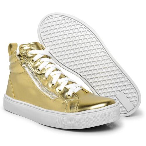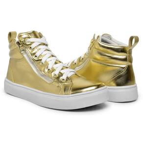 Tênis Cano Médio Metalizado Lk Store Fecho de Cadarço e Zíper - 36 - Amarelo Ouro