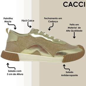 O Tenis Casual Cacci Tratorado Feminino 5005 apresenta um design moderno e contemporâneo, com solado tratorado que possui uma aparência marcante. Esse tipo de solado não apenas adiciona um toque estiloso, mas também oferece excelente tração em diferentes tipos de superfícies.