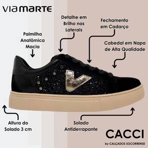 Tenis Casual Conforto Dia a Dia Feminino Via Marte 082-011 - Preto - 35