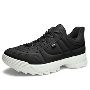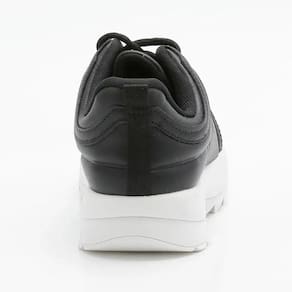 Tênis feminino casual, confeccionado em material sintético, recorte em cor contrastante e fechamento por cadarço.