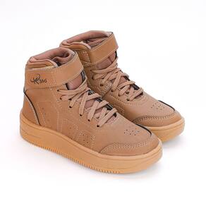 Unindo tendência e estilo, este modelo de tênis com cano médio é sinônimo de moda e modernidade. Inteiramente na cor caramelo, foi projetado para oferecer conforto e suporte. Possui fechamento combinado de cadarço e fita aderente, garantindo um ajuste seguro e personalizado. O forro em tecido absorvente, juntamente com a tecnologia Respitec exclusiva Kidy, mantém os pés secos e frescos ao longo do dia enquanto o solado antiderrapante proporciona segurança e estabilidade, tornando este tênis perfeito para todas as aventuras dos pequenos.