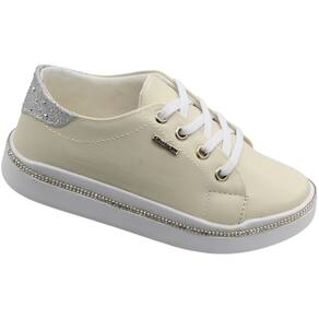Tênis Casual Infantil Sophia Almeida Giltter Strass Menina - 32 - Bege