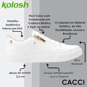O Tenis Casual Kolosh Calce Fácil e Conforto C3008 é fácil de calçar, ainda mais fácil de se tornar seu tênis preferido! De calce super ajustado graças ao zíper funcional colorido localizado na lateral do pé, o Tênis Kolosh Casual ainda entrega muita comodidade graças a sola com altura de 3,2 cm, que recebe um desenho especial e delicado.