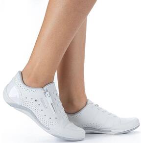O tênis para ser seu aliado em qualquer desafio do cotidiano: de calce fácil, graças ao zíper estrategicamente colocado na lateral do peito do pé, entrega ainda um design incrível, os cadarços recebem elástico para ajustar ainda mais o calçado ao pé, enquanto o cabedal clean recebe a aplicação de cravos e micro furos em locais estratégicos do pé, para melhor transpiração. E a palmilha recebe cunho em gel, oferecendo ainda mais absorção de impacto na caminhada.